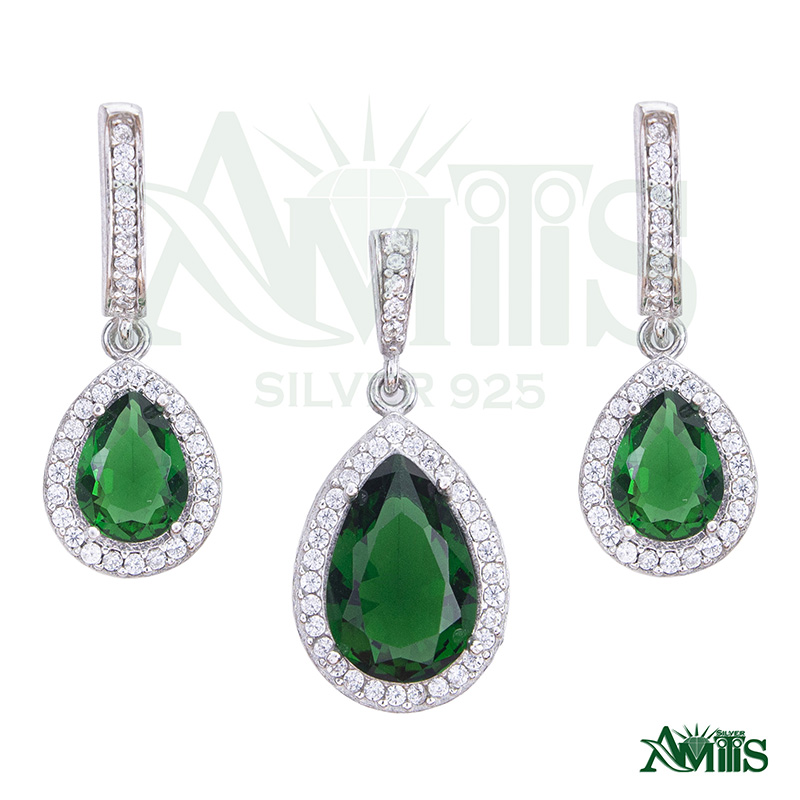 نیم ست نقره زنانه مدل امرالدکات AMT-N178